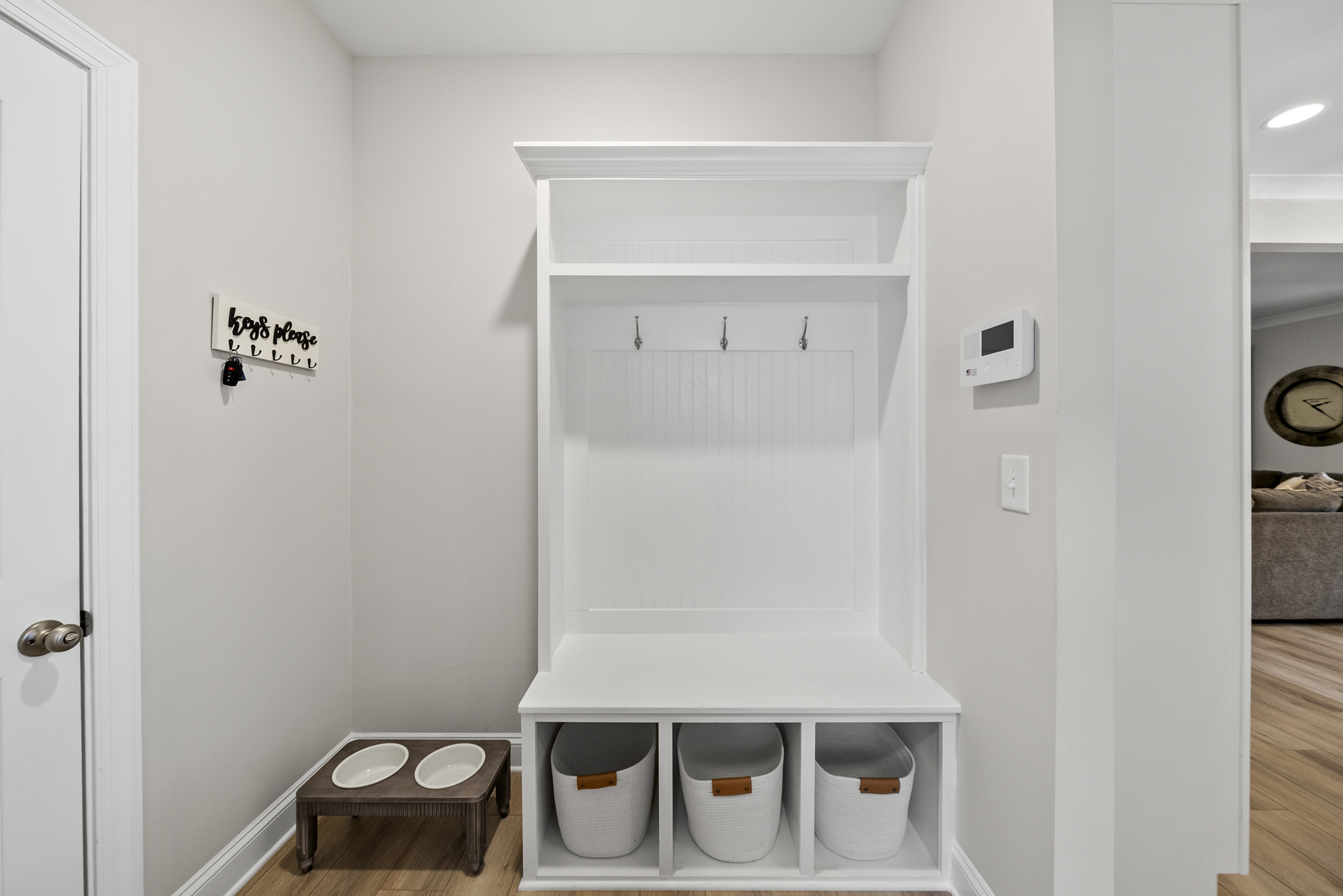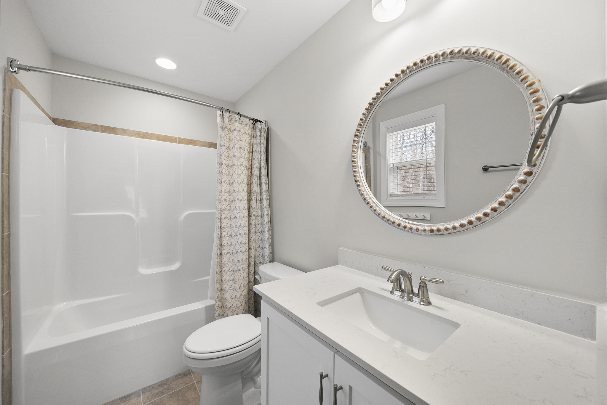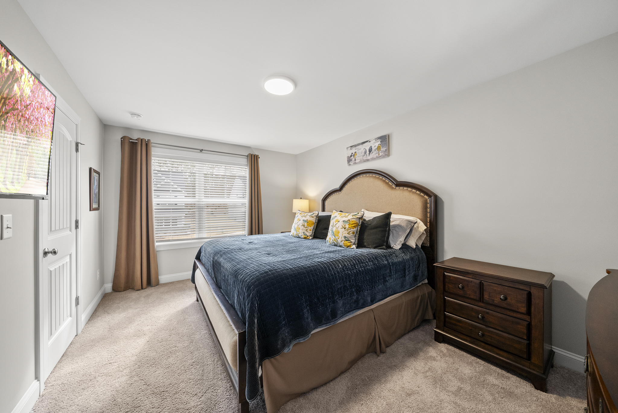The first-floor primary suite offers a private retreat with spacious walk-in closet, and spa-inspired bath featuring an oversized tiled shower, and private water closet.