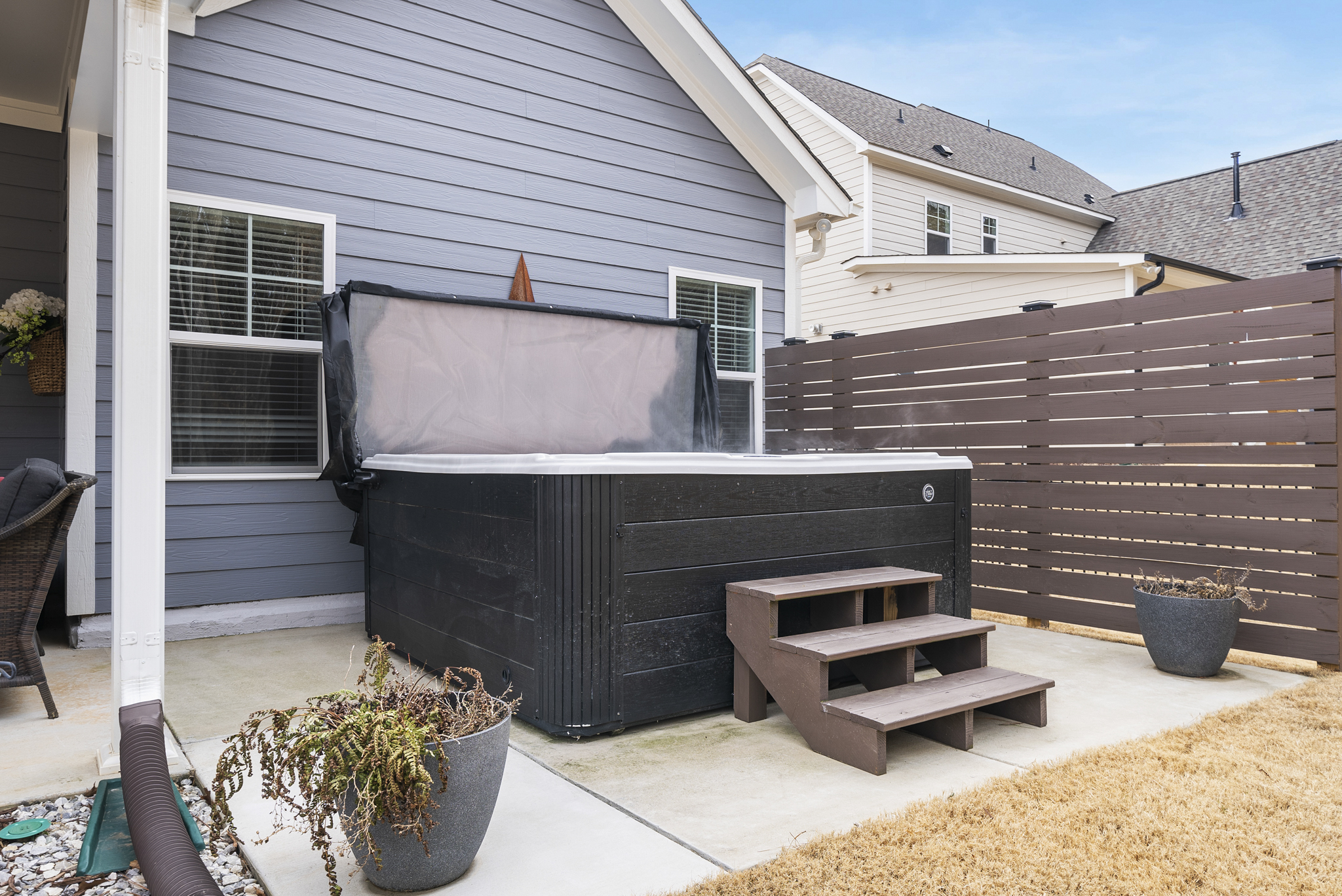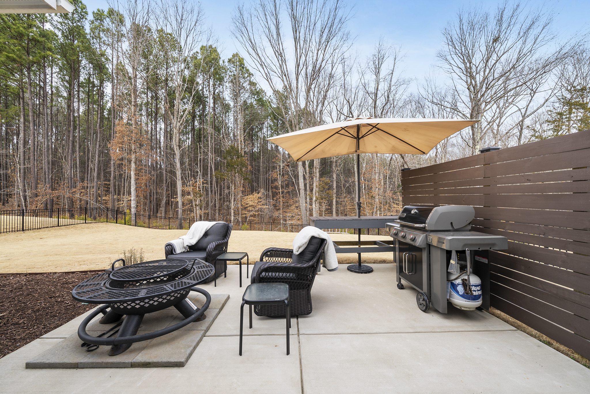 Step outside to your covered porch overlooking a private backyard setting—perfect for morning coffee or evening gatherings.